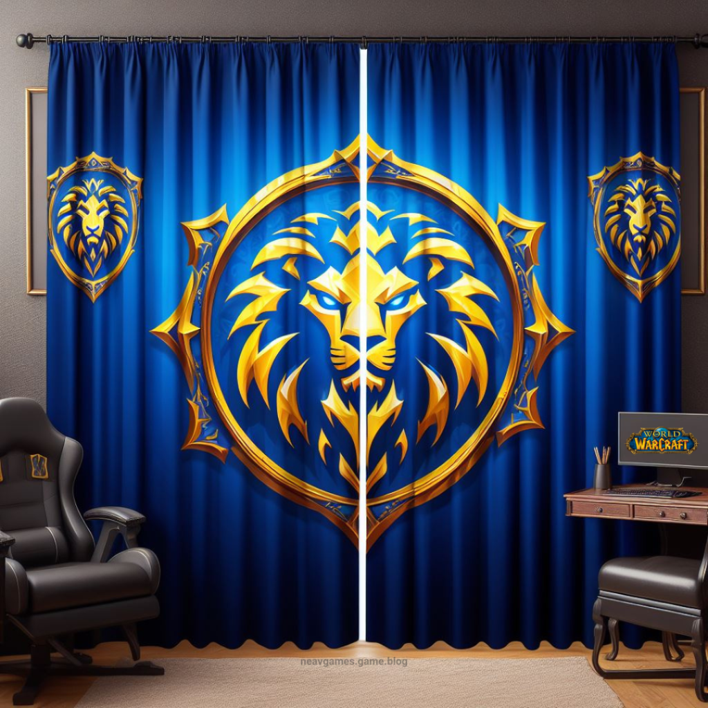 Frame your gaming setup with curtains featuring the emblems of the Horde or Alliance. These curtains look great and help block unwanted light for a better gaming experience.